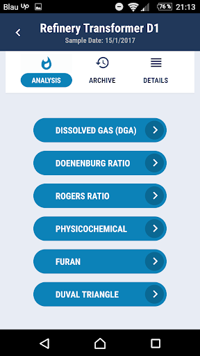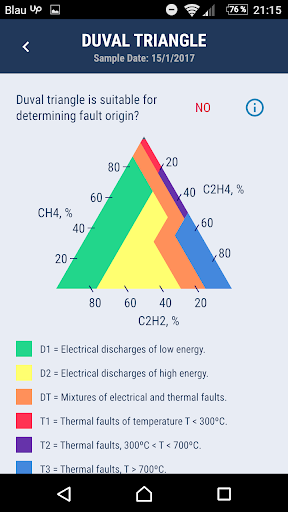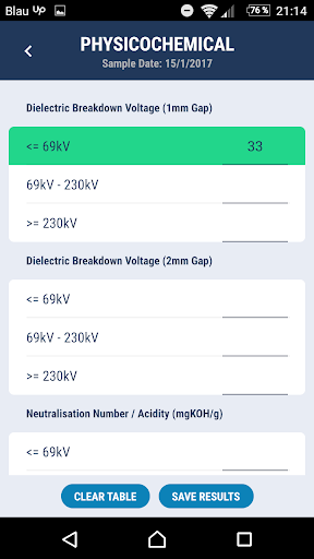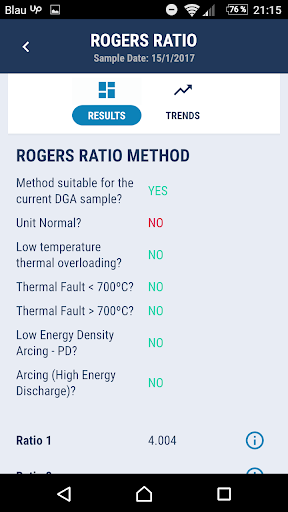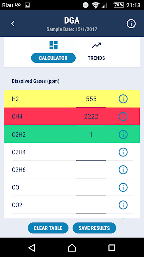 Limits for each analysis type have been set using a simple traffic light system; if the app shows red you may need to take action. Trending of all analysis types is possible; this feature gives you a good overview of past and present values.