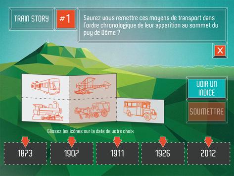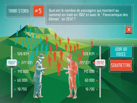 A l'aide d'archives historiques et de documents inédits, menez l'enquête et dénichez les indices qui vous permettront de résoudre chaque mini-jeu. A chaque défi résolu, collectez les pièces du train jusqu'à, en fin de jeu, pouvoir reconstituer le Panoramique des Dômes dans son intégralité !