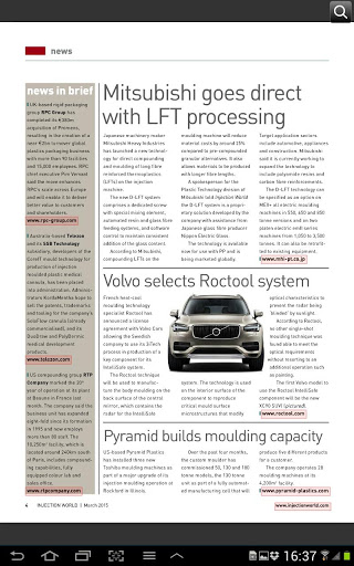 Published by AMI Plastics, it covers developments in machinery and materials technology. It also includes global news and market analysis, plus special reports on automotive, medical, packaging and electrical applications.
