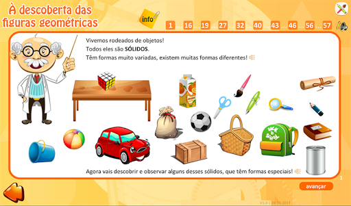 Nesta aplicação, vais aprender os seguintes tópicos: Identificação de sólidos geométricos; Poliedros: faces, arestas, vértices.