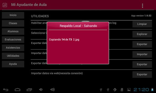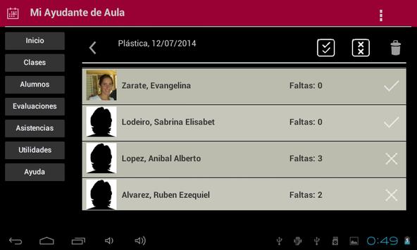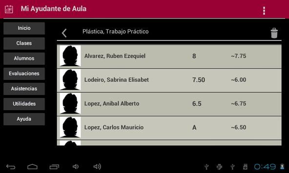 Esta aplicación orientada a docentes, le ayudará a mantener organizadas sus tareas dentro del aula. Almacene información de sus alumnos: foto, documento, correo, teléfono, etc.. Agrupe a sus alumnos según la materia y el horario de la clase. Tome asistencia y controle las faltas de cada uno. Genere registros para las evaluaciones, trabajos prácticos o pruebas de diagnóstico y obtenga fácilmente los promedios.