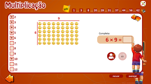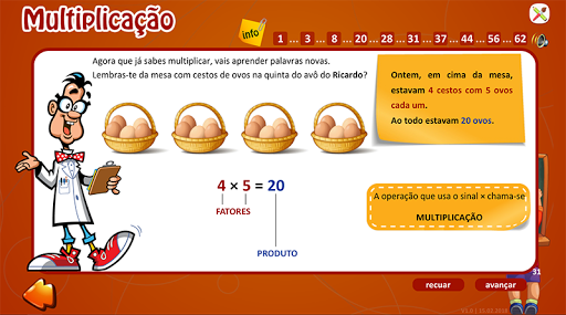 Nesta aplicação, vais aprender a multiplicação com números até doze, a partir de situações concretas.