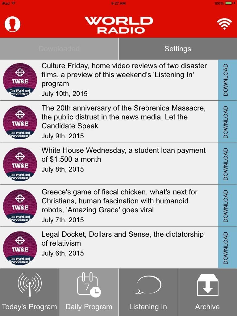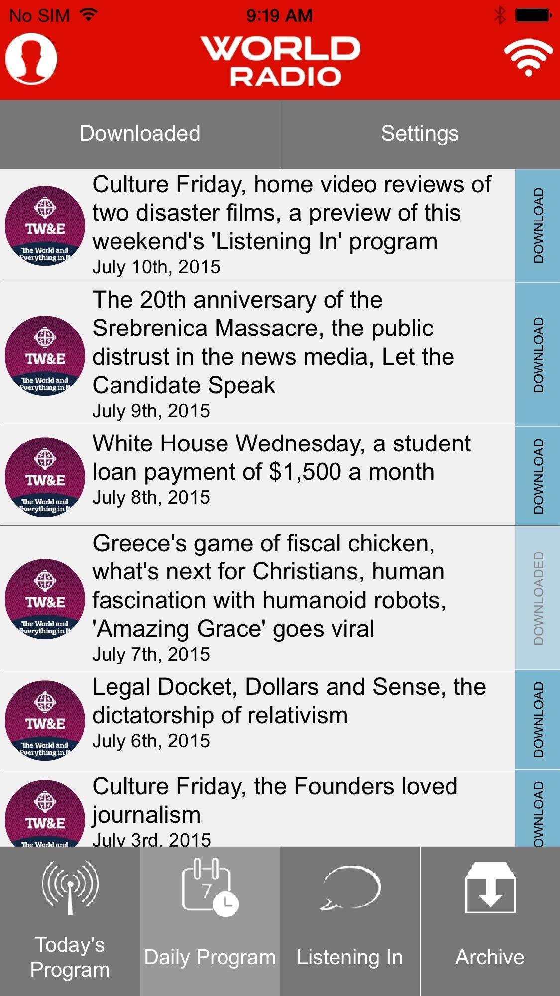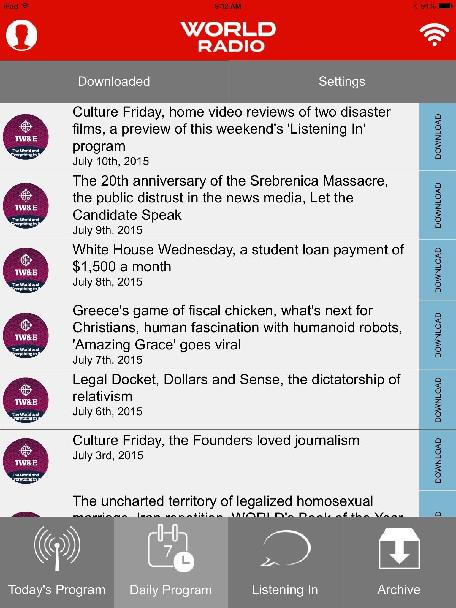 WORLD Radio’s customized app features automatic downloads, program descriptions, and convenient content organization, including the ability to archive your favorite programs.