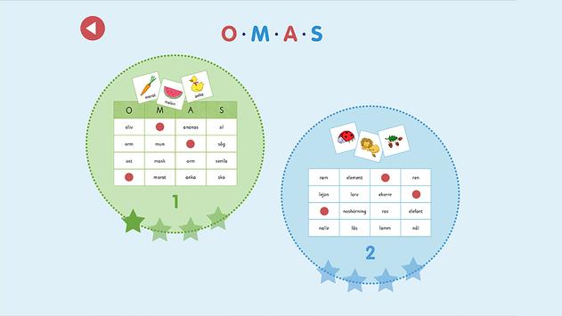 I den här lite-versionen av appen ingår första gruppen med bokstäver, OMAS. Ladda ned fullversionen för att få åtkomst till samtliga nivåer.