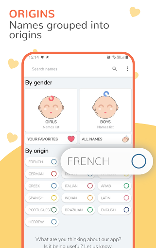 - Allows you to filter by name, by origin and by gender (girls or boys);