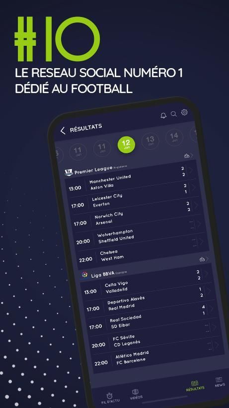 #10, l'appli qui vous fournit les dernières nouvelles les plus complètes du football, des scores en direct, des videos de match et des faits saillants.