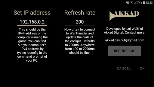 WarThunder Virtual Cockpit connects to your home PC and shows you an analog cockpit in real time while you play WarThunder. Very simple to configure. Very useful if you play Simulator, or just want some extra realism. Future updates will include a fully customizable cockpit layout and engine management, flight coordination and weapon management gauges and indicators.