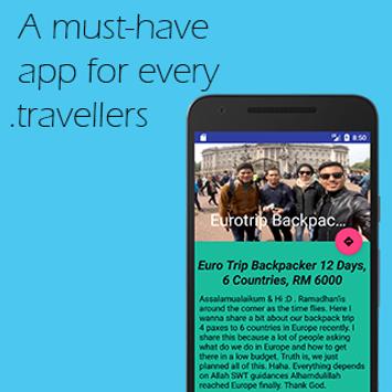 This app contains collections of travellers stories or logs while they're travellings around the world. It give a clear views on whats place really looks like from the point of view of travellers. This app also contains location that direct readers to the starting point of travellers.