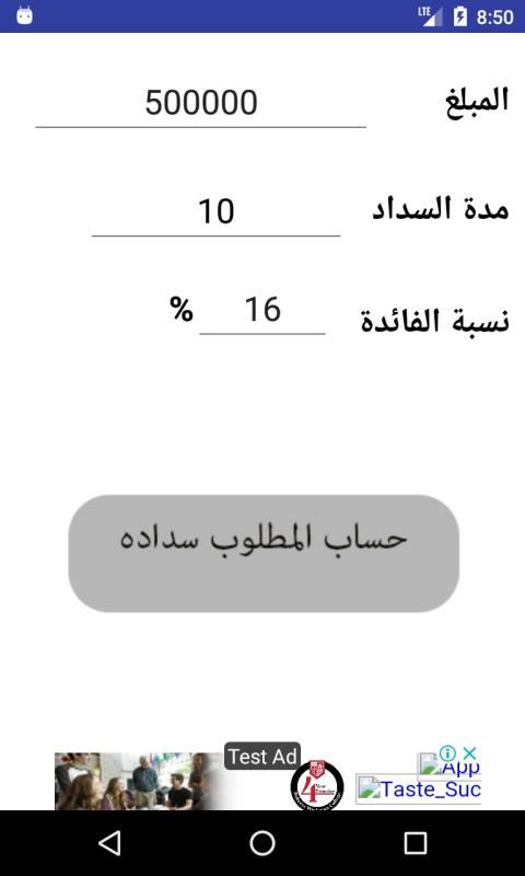 و لحساب الفائدة المدفوعة علي القرض، يتم إدخال المبلغ، و عدد سنوات القرض، و نسبة الفائدة