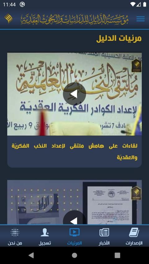 A comprehensive, free application that contains all the publications and activities carried out by the Foundation for Studies and Research on Nodal belonging to the Holy Husseinian threshold. It is also possible through this application to register in the intellectual and contractual courses carried out by the institution for various academic groups, including professors, university students, teachers, teachers, educational supervisors and others, and we will work to Soon developing it to include other capabilities.