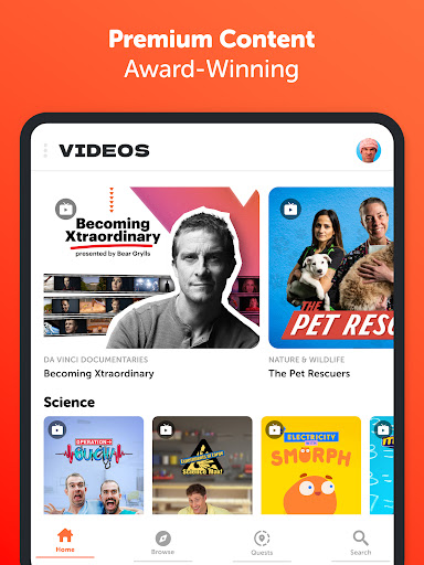 Our interactive learning journeys are what set Da Vinci apart from other educational apps. You are tasked with completing learning quests, which involve watching short video clips from our shows and then answering quiz questions to test your knowledge. As you progress through the quests, you are rewarded with progress badges, motivating you to continue learning and exploring the content.