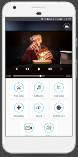 VideoMeo offers excellent and cool video editing features that lets you edit and beautify your videos. You can use those features to trim your videos to a certain duration, or you can apply a lot of different stickers on your videos. You can also increase or decrease the speed of the videos and add background audio to your videos. There is also options of merging multiple videos into one video either by side by side or by concatination. You can also crop the selected frames of the videos and also you can convert your videos in many other formats.