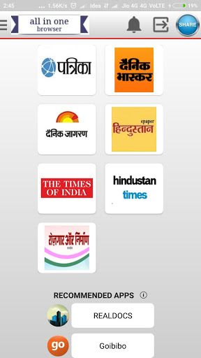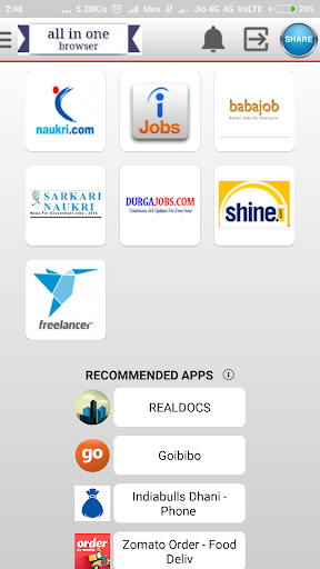 Browser having all imortant basics which you consume lots of time to search. Its benificial for job seekers , get new updats of job , newspaper reader having all news in one . Student having new technolgies in one , All shops in one app ,facebook , linkedin sports news , devloper helps . All in one so why you waste time just download now. if any problem please review us so we continously update for you.