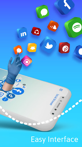 * The User-friendly, all-in-one social app lets you browse all major social media networks, marketing, and all the popular social media apps. Easily access all instant messages and chatting apps like telegram, simply send instant messages from your phone in smart social app.