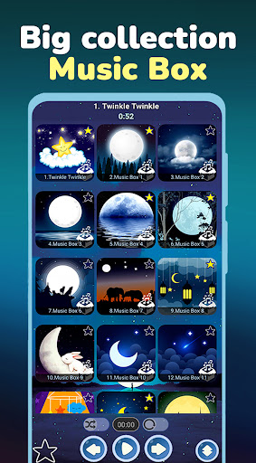 - you can mark your favorite lullabies for children (long press on the song icon) and they will be added to a separate list of favorites (switch - long press on the star icon at the bottom left). Selected baby lullabies and music box melodies are saved and on subsequent launches of the application you will not you need to recreate the list.