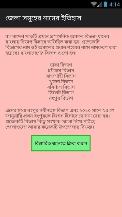 এই অ্যাপ এর সাহায্যে বাংলাদেশ এর ৬৪ টি জেলার নামকরণের ইতিহাস জানতে পারবেন এবং শেয়ার করতে পারবেন।