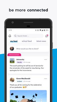 College is more than just your classes, it’s about campus life, too. Ambi makes it easy to stay on top of campus events and your favorite groups, all while discovering new interests and activities