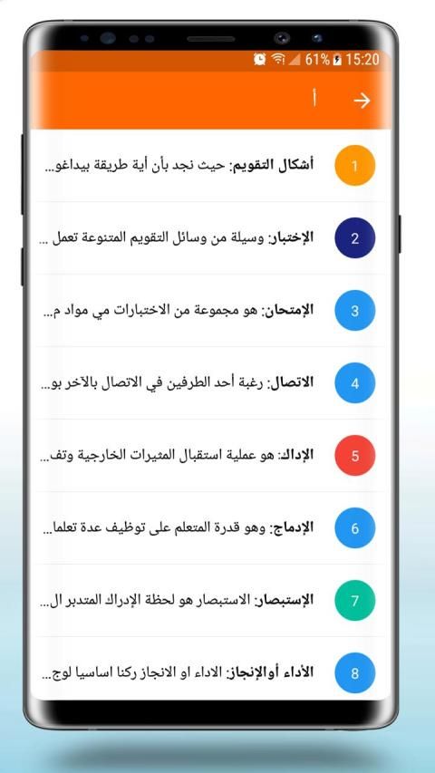 اقدم لكم تطبيق الشامل في علوم التربية البسيط الدي يهدف الى رفع مستواكم في علوم التربية ، حيث يوفر لك العديد من المعلومات القيمة في مجال علوم التربية لإستعداد الجيد لاجتياز مباريات امتحانات الكفاءة المهنية والمباريات التوطيف بالتعاقد التي تخص وزارة التربية و التعليم. فتطبيق ينصب حول علم النفس التربوي و علوم التربية و فلسفة التربية و الديداكتيك و البيداغوجيا المواد بالخصوص علوم التربية بالمغرب و نماذج تحليل النصوص التربوية و اختصاصات ومهام أطر التدريس و نظريات بيداغوجية و مستجدات التربية والتكوين و مسؤوليات موظفي وأطر التربية والتعليم و أساليب التدريس بالأهداف والكفايات