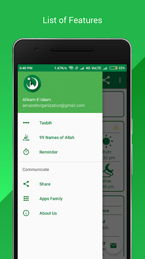 ✔ Ahkam e Islam is an Islamic app for all Muslims worldwide. App has features like Muslim Prayer Times of any location, Dhikr Counter(Tasbih Counter), Alarms as per user settings etc.