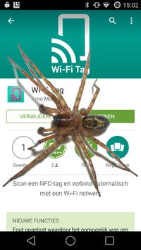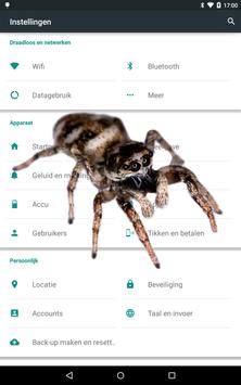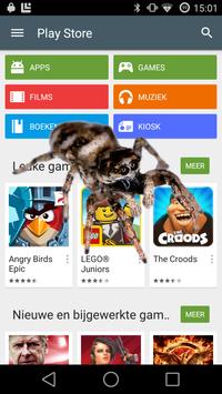 This app displays several different spiders on top of the screen of an Android phone or tablet. It automatically starts itself when the phone is restarted or when the app is opened. Scare you friends by putting a huge spider on his/her device!