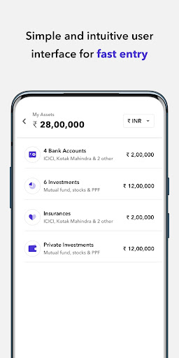 - With simple and intuitive user interface tracking your net worth is now very easy