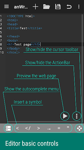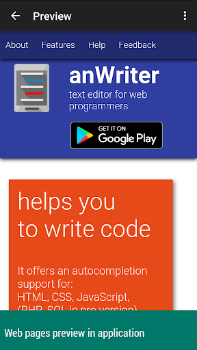 anWriter HTML editor helps you to write code: