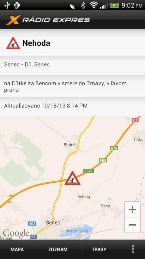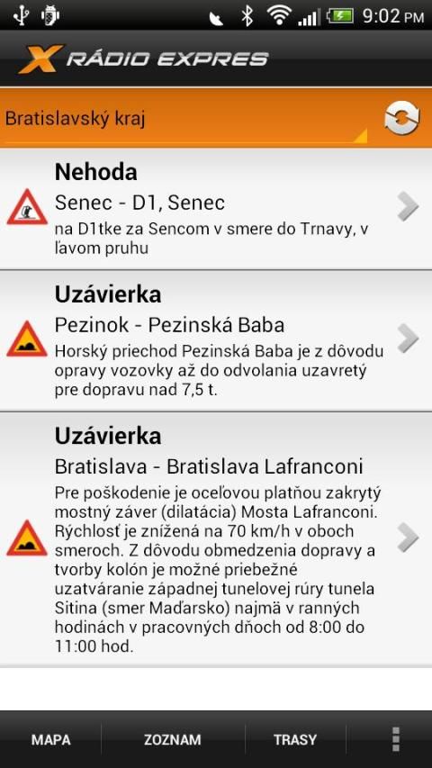 The transport service of Radio Expres brings traffic information from the Slovak roads.