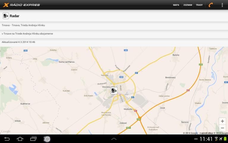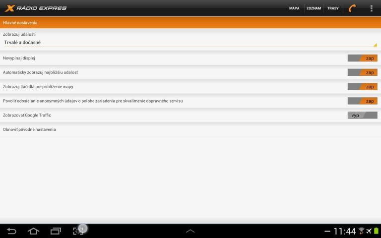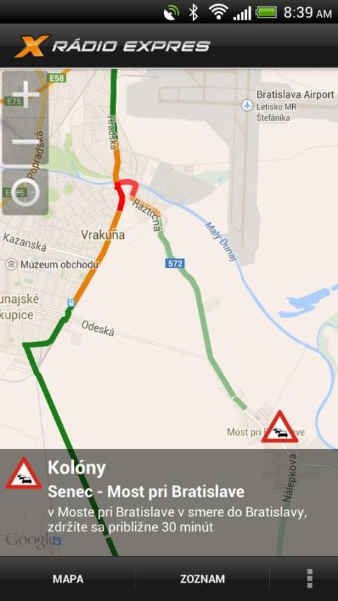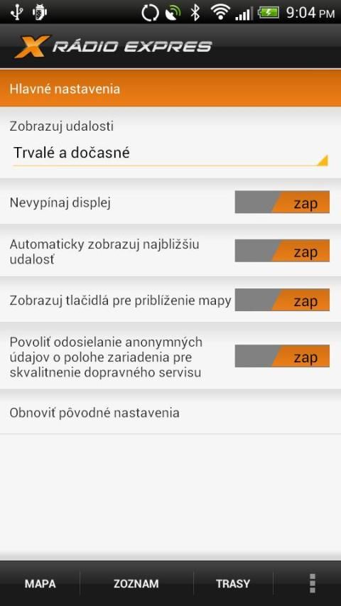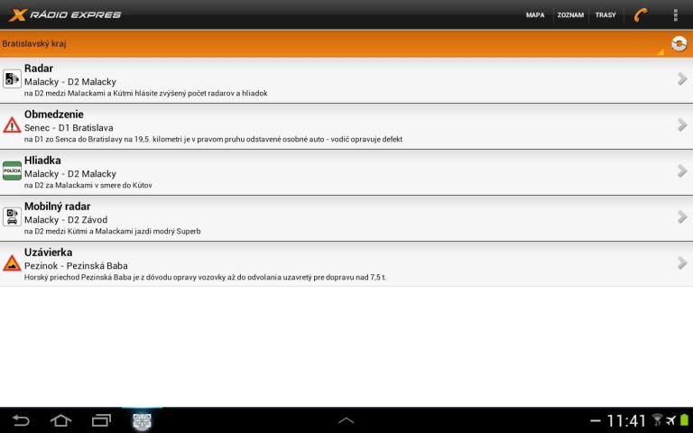 * automatickú aktualizáciu údajov z dopravného servisu Rádia Expres