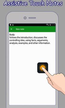 Notes in assistive touch helps you save notes and reminders. Never forget little things, tasks, to do or reminders with notes in assistive touch. Your reminders always remain with you in new easy touch, this touch assistant only carries your notes and reminders Notes in notification or notify reminder take notes in assistive touch which always remind you about any task or reminder.