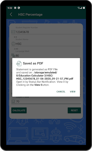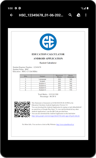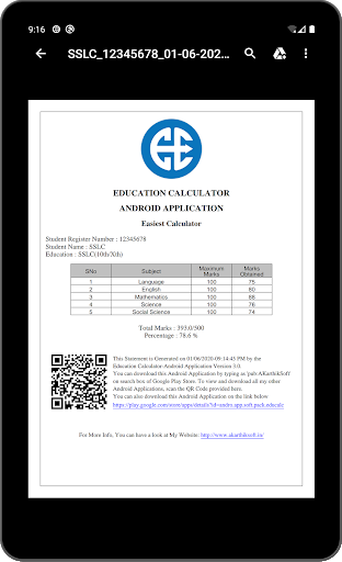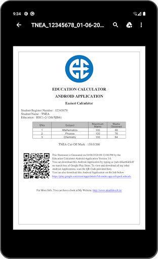 This Android Application will also generate a PDF File for future reference by just input the Student Register Number, Student Name and Obtained Subject Marks out of 100/200.