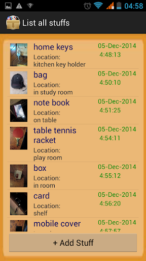 The main purpose of this app is to remember where you placed your stuffs.