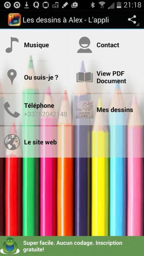 Bienvenue sur ma première appli, celle de mon blog à dessins "les dessins à Alex"