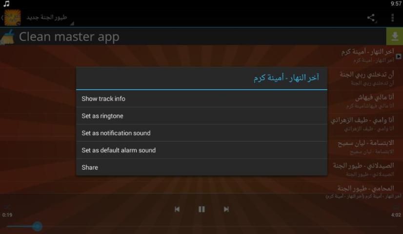 ترتيب اغاني كما جاء في التطبيق كما التالي