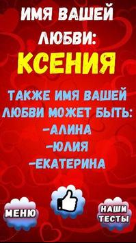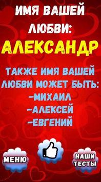 Тогда установите наш тест и получите ответ на этот вопрос! Ответьте на несложные вопросы нашего теста и ты узнаешь имя своей любви. В тесте предоставляется на выбор ваш пол, поэтому скачать наш тест могут и парни, и девушки, мальчики и девочки! Большая база имен дает возможность предсказать наиболее точный результат. В этом тесте ты узнаешь какое имя будет у твоей второй половинки.