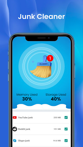 The junk file cleaner cleans up cache and junk files that take up memory and storage space, which helps to improve and optimize the speed and performance of your phone.
