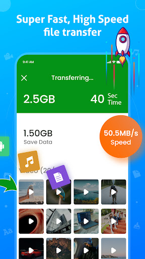 • Seamless transfer to share apk, docs, photos, videos and more.