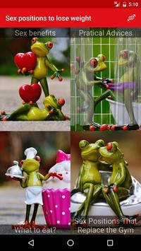 Having sex can help you burn calories! It's all about making the most of the sex position you choose. Indulge in some sweaty sex with your partner and try these sex positions that help you lose weight.and many other benefits!In addition to our app you will find practical advice (as aesthetic and mental preparation) to be able to fully enjoy your sexual relationship and an extensive list of dietetic foods with excitatory properties.Just relax and get to the game.