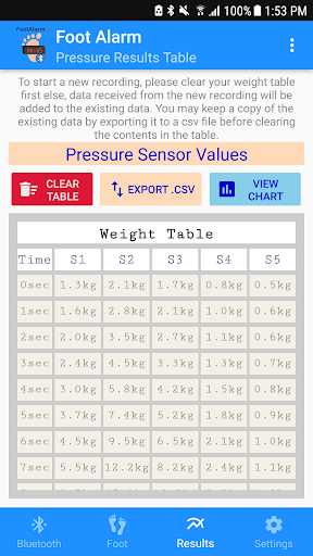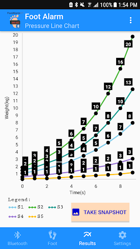 - Graphical plot of real time data from Foot Alarm Bluetooth