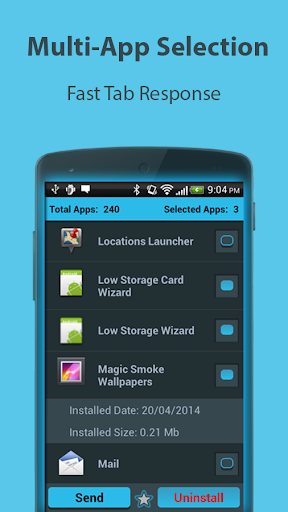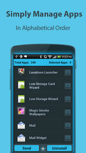 Through this app, you will find an alphabetized list of all your installed apps in your phone. It makes it easy to share and uninstall selected apps.