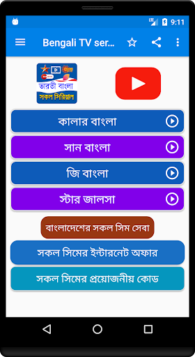 Watch all TV series like, star Jalsha, Zee Bangla, colors Bangla, Sun Bangla.