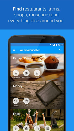 World Around Me is a unique way to find useful places around you - such as restaurants, ATMs, shops, bus/metro stations and more. WAM uses your phone’s camera to give you a completely new way of exploring a place, anywhere in the world.