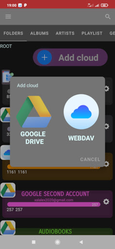 X- Cloud Player is smart Player which streams music from unlimited number of cloud drives (GOOGLE and webDAV).
