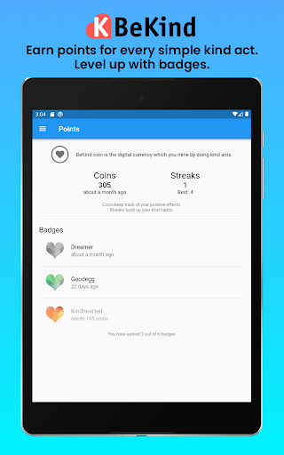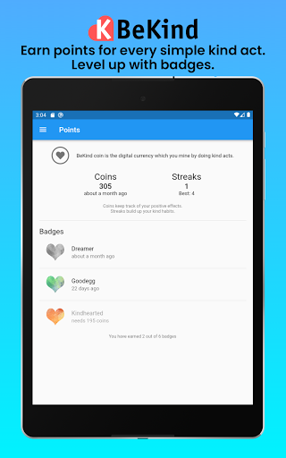 • Kindness Tracking: Do an act of kindness now or later. Use our suggested ideas, or create your own. Keep track of all your good deeds, personalized with pictures and stories. Earn coins, level up with badges, and have fun.
