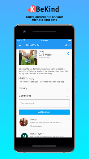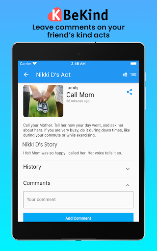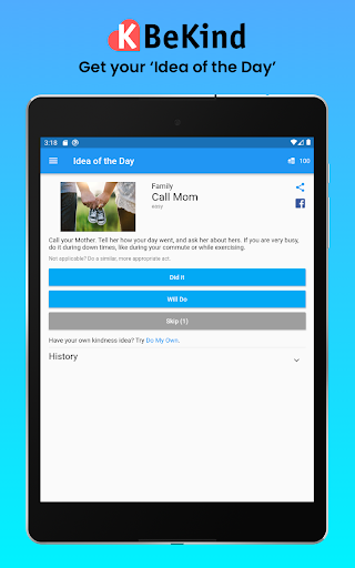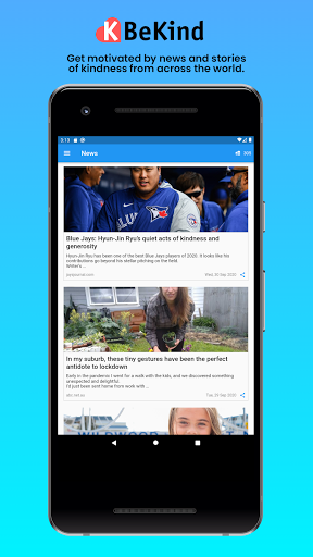 BeKind is a free, social, kindness app that gives simple, daily acts of kindness ideas that anyone can do. It's a fun way to build a habit of kindness. It allows you to add your friends and connect with other kind and loving users. The inspiring stories from around the world will also keep you more motivated to be kind.