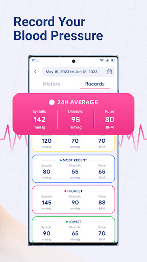 Our blood sugar tracking functionality simplifies the process of managing your blood glucose levels and heart rate. Through personalized adjustments to your diet, exercise regimen, and medication routine, the Blood Pressure app aids in daily blood sugar control.