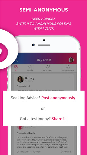 Blessapp allows you to seek advice anonymously and find support from a community of identifiable allies. Comments are attached to public profiles to encourage positive dialogue.