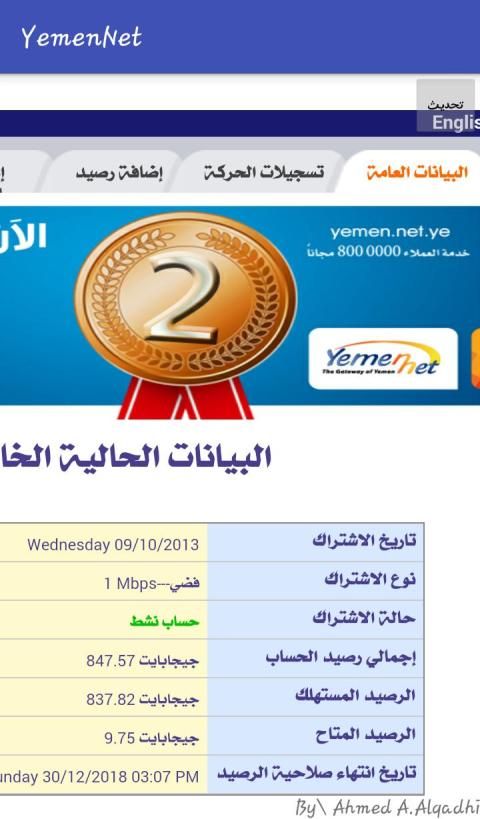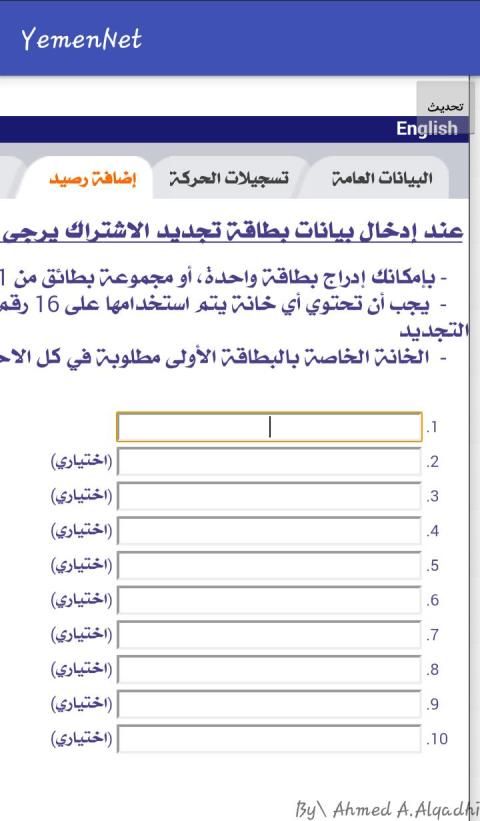 يمكنك التطبيق من تسديد كروت يمن نت ومعرفة المعلومات عن رصيدك تاريخ الانتهاء ورصيد التحميل المتبقي وغيرها