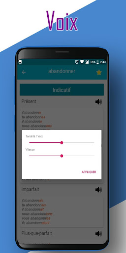 o aplicativo da Conjugação Francesa, que permite que você contrate todos os verbos em francês, sem conexão com a Internet.