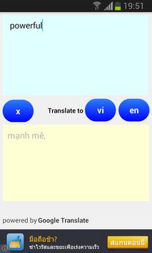 “Translate English Vietnamese” is the powerful application for you to translate English to Vietnamese or Vietnamese to English.
