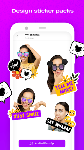 Make your personal stickers for WhatsApp & Telegram! Create photo stickers, text stickers, anime stickers, meme & emoji stickers from scratch. Need more? Explore over 70 free sticker packs with tons of stickers to use: stickers of your favorite celebrities, animal stickers, & so much more!